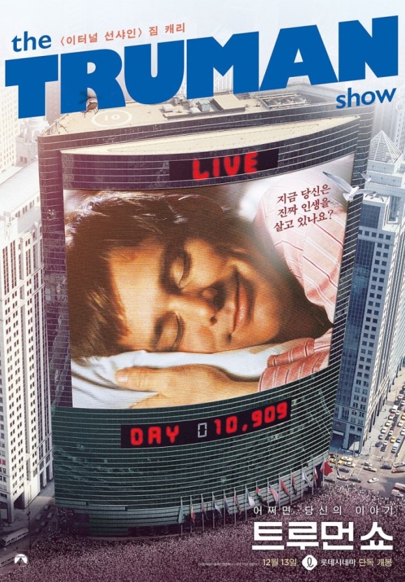 처음 '트루먼 쇼'라는 영화를 봤을 때 신선한 충격으로 다가왔습니다. 우리가 영화를 시청하는 것처럼 영화속에서도 3인칭 시점으로 주인공을 바라본다는게 매우 신선했습니다. 갓난 아이때부터 성인이 될 때까지 마치 우리나라의 GOD가 재민이와 찍었던 예능방송을 보는 느낌이었습니다. 그걸 90년대에 찍었다니 놀라울 따름입니다.